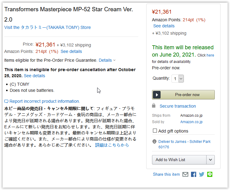 hausjam wrote:I ordered from アマゾンジャパン合同会社 which is Amazon Japan LLC. Who was I supposed to order from?