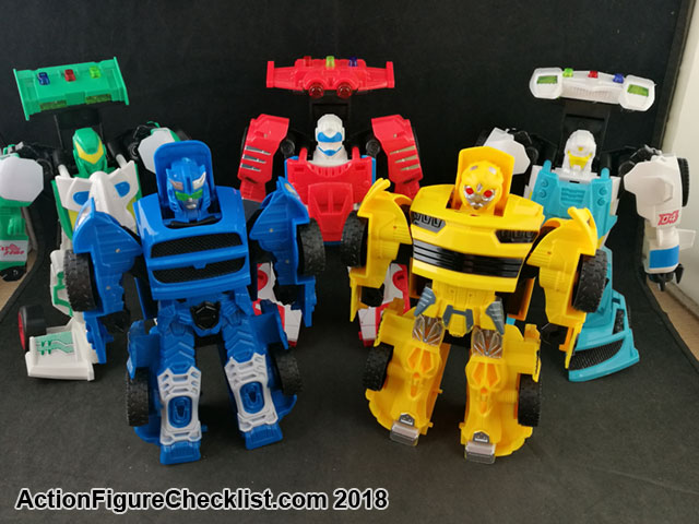 They're some sort of Rescue Bots knock-offs (of Blurr and Bumblebee), but I couldn't tell you who made them if that's what you're asking.