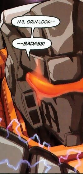 Wouldn't mind how much he sounded like Megatron if he just replaced "I" with "ME". Oh well, it'll surely go through some tweaks. And maybe bad grammar would be too hard to work into AofE without making poor Grimmy dumbed-down for the most degrading comic relief ever. I guess I can't complain about Dinobots being genuinely menacing.