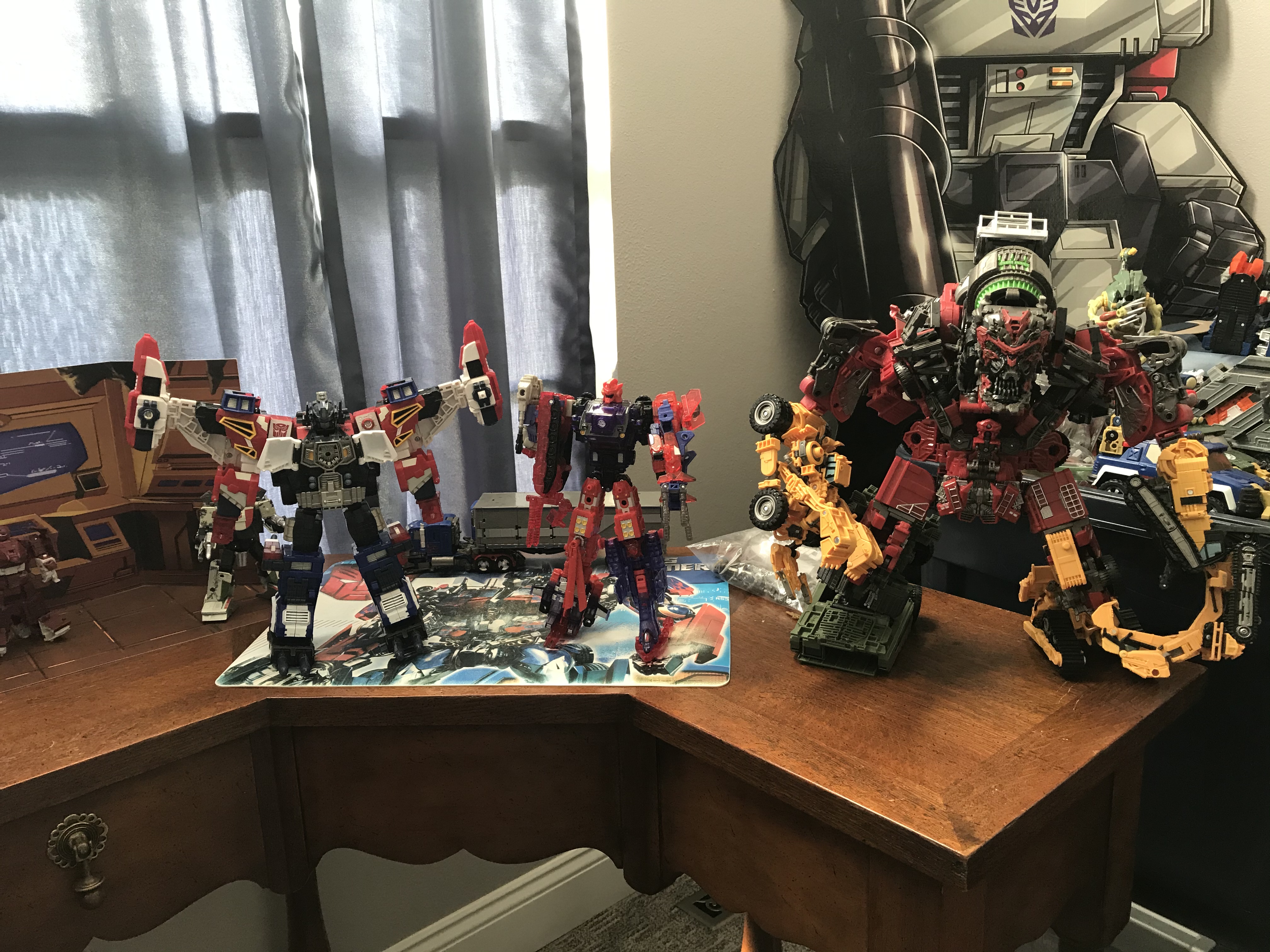I was posting pics on here when i was still active duty and had a work office but (being retired) now I finally have a desk at home in my Transformer Room. Definitely nice having it!