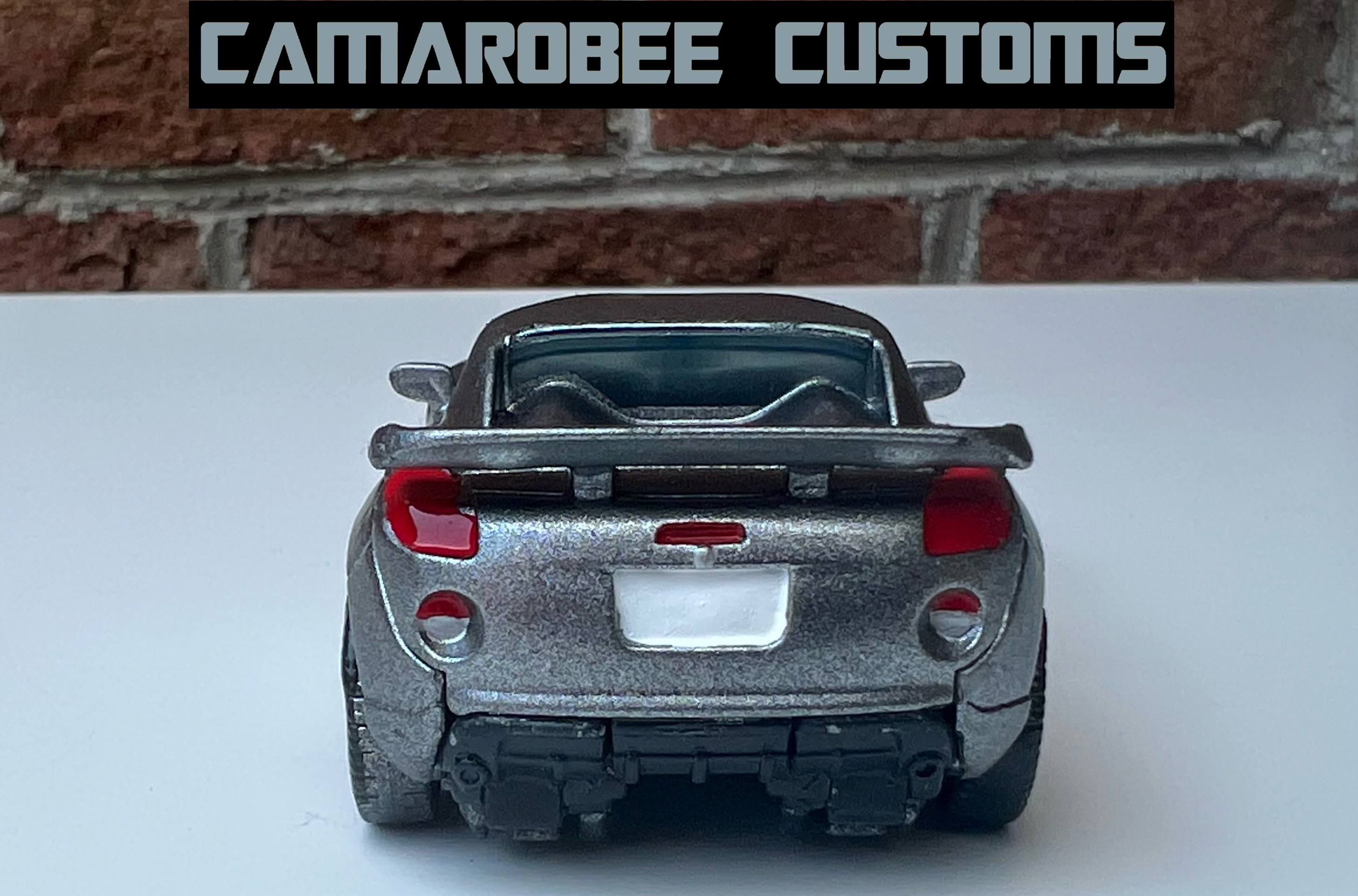 Alt mode was definitely the more challenging mode to work on with Sentinel. We'll start with the base colors, though: I mixed a flat gunmetal and gray to get the darker colored areas on the side and back of alt mode, and spray painted the front of alt mode in a gloss black and the top in silver. The red is an interesting story because I first worked on the project during the COVID lockdown time frame, and the only red paint I could find online was a Liquitex acrylic red that I didn't really realize at the time was not at all intended to use with plastic. It was super thick, flat, and didn't look great. I would later go over the figure with a testor's enamel gloss red in both modes, which looks much better!