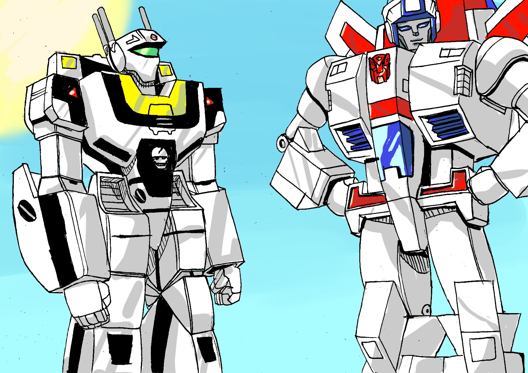 Drew Jetfire next to a Valkyrie. For more art, check out my Instagram @mech_dh