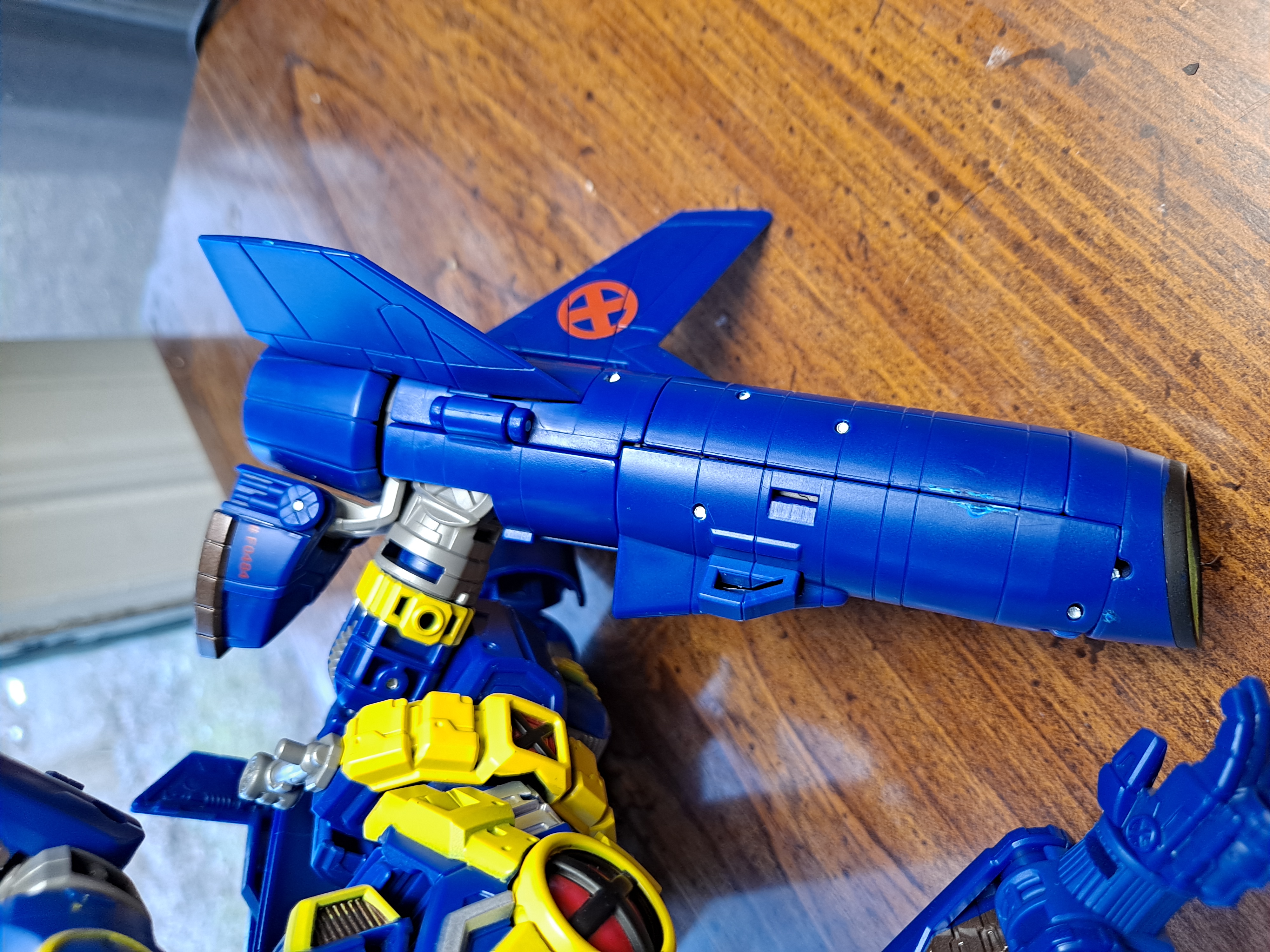 X-guy's biggest strength is definitely his robot mode articulation. His arms have 360 wrist swivel, 90 elbow bend, 360 bicep swivel, ~95 in/out shoulder pivot, 360 shoulder rotation, and a ball joint used for transformation that gives ~5 front/back butterfly and 90 upwards stretch. This last one especially allows him to do the hardest letter of YMCA for action figures.