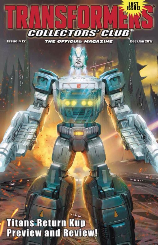 The TCC have tweeted out word that the final issue of the TCC Magazine will start showing up in Members' mailboxes soon. They've also shown off the cover of the Magazine, which features the packaging artwork for Titans Return Kup!