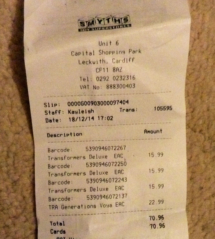 Interestingly Silverbolt didn't ring up immediately, and the guy had to call his supervisor over. Got charged 22.99 so not sure if that's correct.