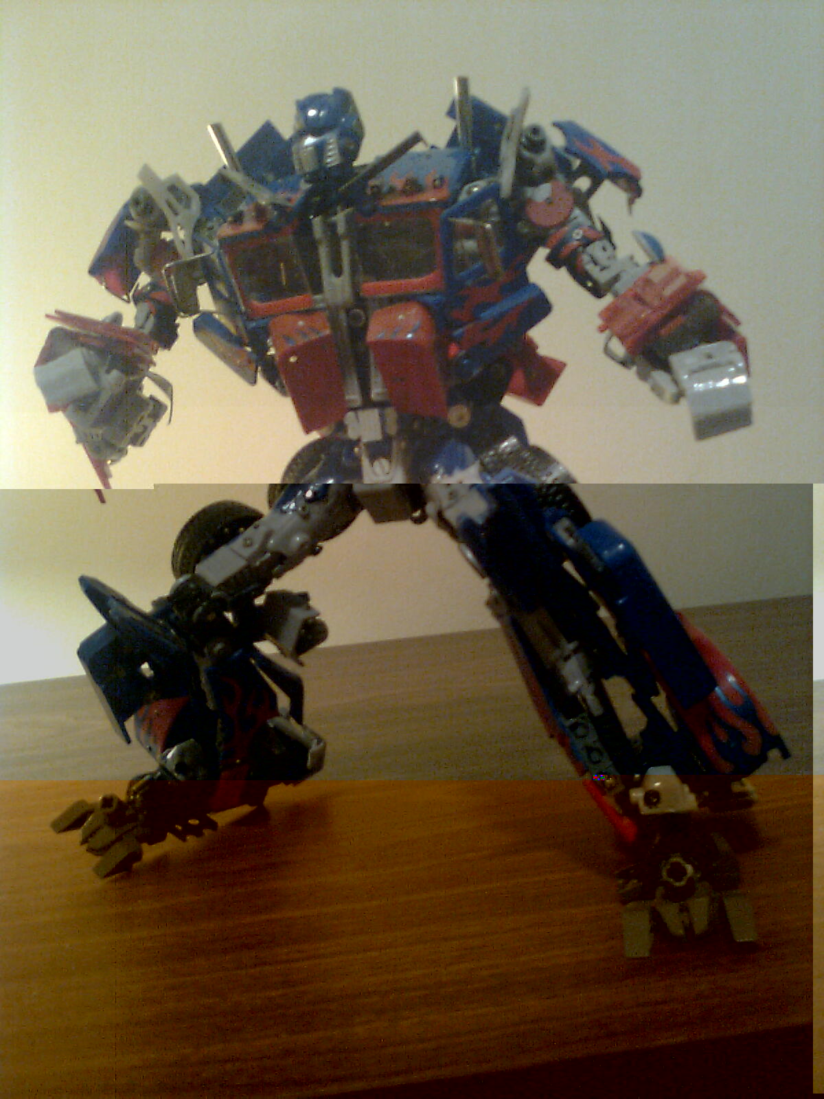 This is my own design of Optimus Prime. Total Homemade. Sorry my English is not so good.Optimus Prime hand-made and own design, made with pieces of plastic, screws, parts of other toys, appliances, etc.. The head was accomplished using another head of a toy of Optimus.