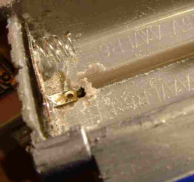 When puting together the headlight sets (two parallel 3mm leds per line), even when you buy the leds on the same store, some of them will not be the same, so i recommend trying them together on pairs before soldering, for the one more power hungry will devour all the current, leaving the other one very dim, so try different ones until you find a pair that looks even. Since everything was outside, i changed the green and red leds for blue ones. In order to create the spark chamber, drill a hole in the neck piece through behind just below the screw keeping everything together, carve all the front and shape it, put the led, connect it with the eye line, and mold the spark chamber with epoxy.
