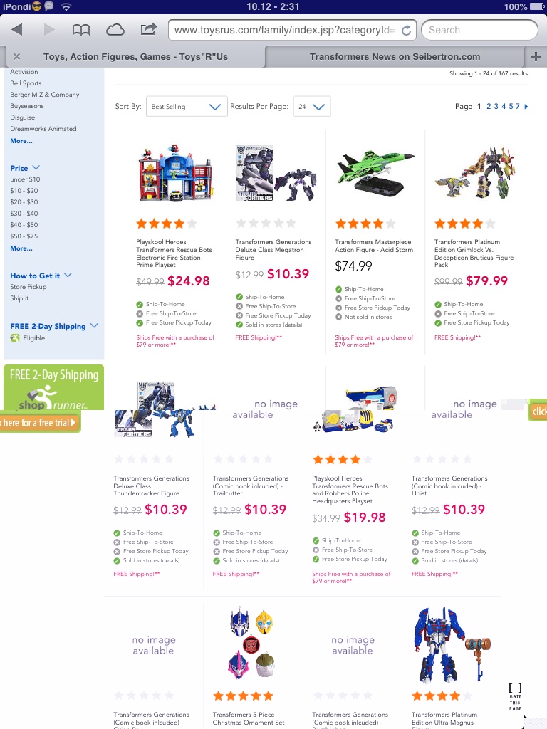 Just checked TRU.com, and its having sales TF Toys! FREE SHIPPING too!