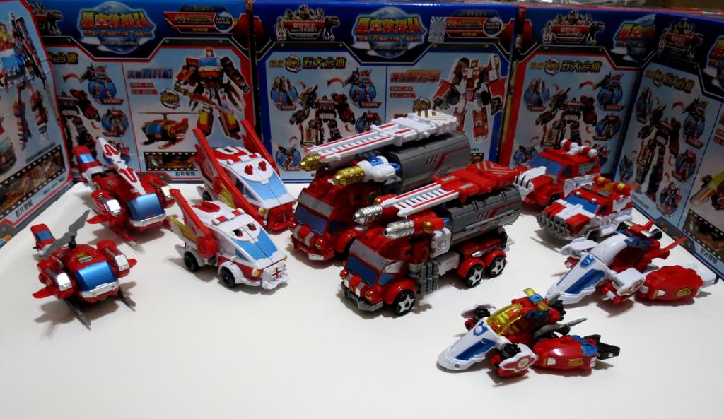 The police car, ambulance and copter would work as-is, just the mototcycle is too futuristic, but he'd be OK. If he could swap spots to be a leg that would be better.