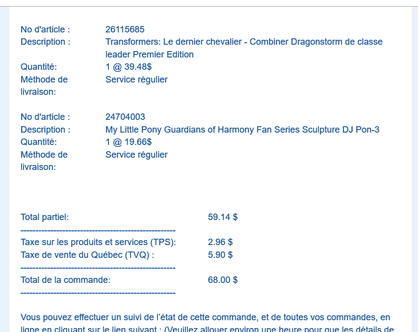 Today the sale was still on. Add 25$ off to the total and I got a sweet deal for those two toys that I never wanted to pay full price for: