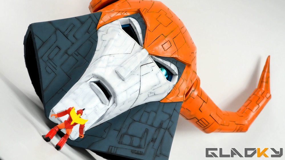 Unicron's head is based on its appearance in Transformers The Movie. As design had a tendency to rapidly shift between takes, I have decided not to stick to any particular frame but instead build my own interpretation, based on the overall "feeling" this character gave me.