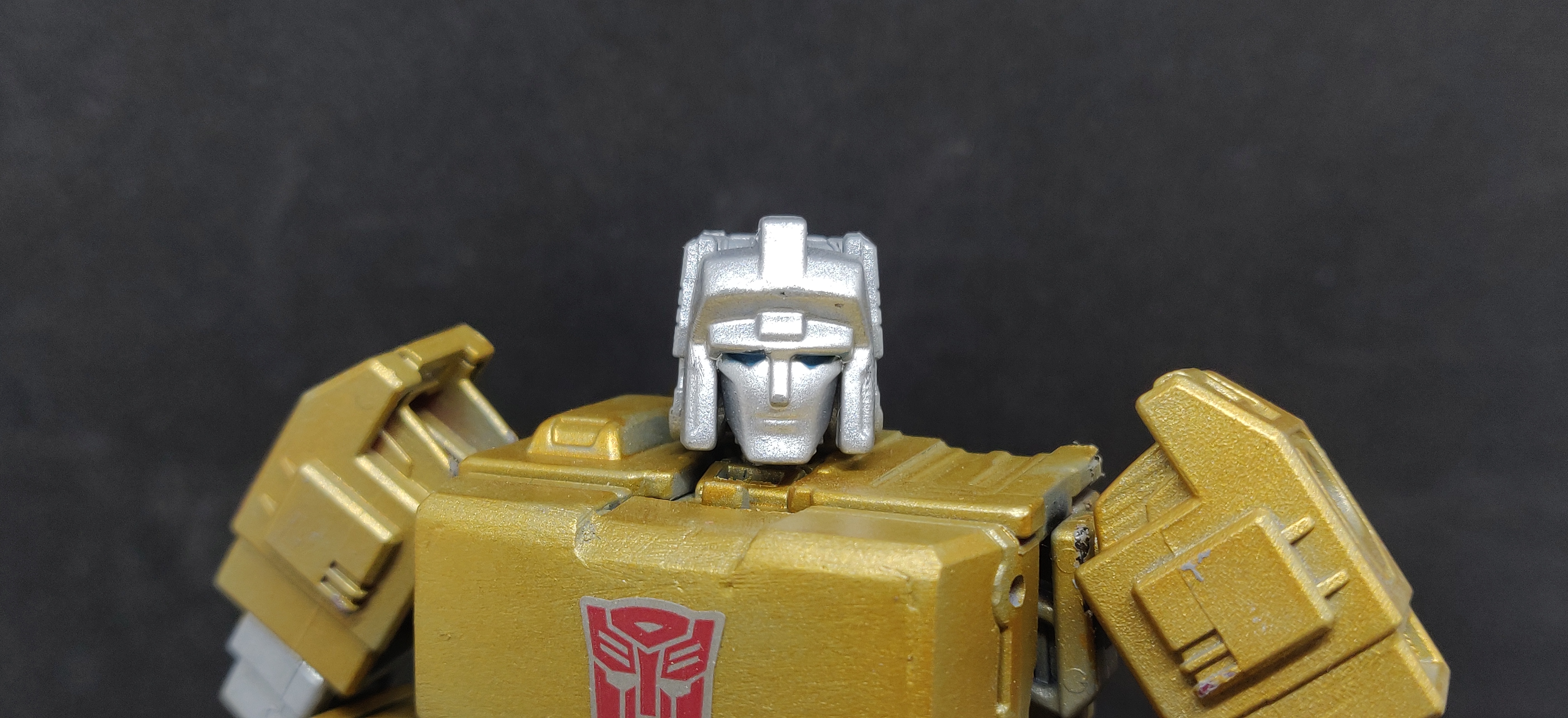 So thought I'd make the founder of my favourite autobot team good old Entire Xaaron but why not make him a Titan master. The based figure is that of TR Perceptor modified some the dials on his arms removed and his chest being filled in, the Head is that of the Titan master Ptero set just painted to match, I've gone for a darker gold look to make him sorta fit in my display a bit better.