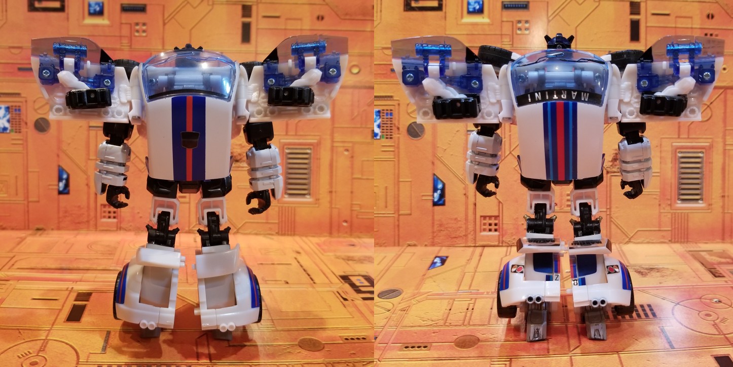 The RTS Jazz has such great detail, but I felt a lot of it was left out. Mine is combination of Toyhax labels and custom paint apps using a mix of testors brand enamel and krylon clear coat. I would have loved to try to get a spoiler more similar to his G1 version, but the Toyhax labels did a nice job. I also tried my hand at doing a dry-brush type effect on his gun. All in all, I feel I have my definitive modern style G1 Jazz. Before and after ahead: