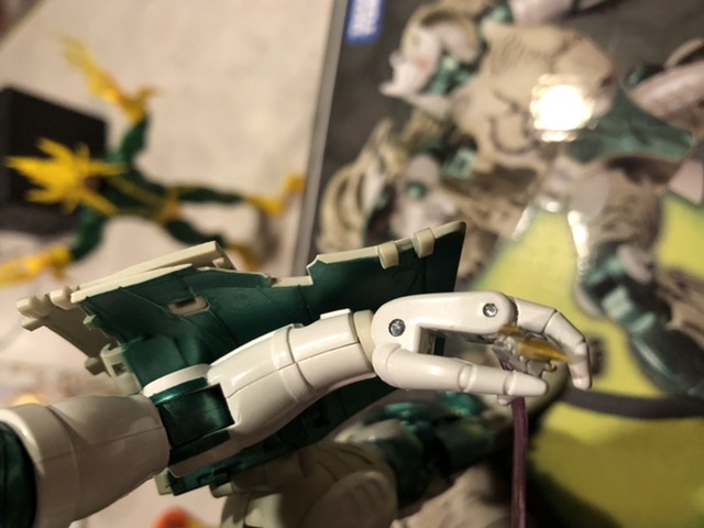 Most joints are super tight, except for the knees. And that is my biggest gripe about the robot mode, his knees suck. They kind of remind me of Siege Megatron's ankle tilt where you felt you were undoing something rather than bending. I have a neo dodging bullets pose below that shows how he looks like with bent knees. Not great. Another aspect that could have been easily dealt with is the arm kibble does not tab into his arms. I guess it makes it slightly easier if you want to pose his hands but that could just as easily be achieved if you had a small peg you could unpeg.