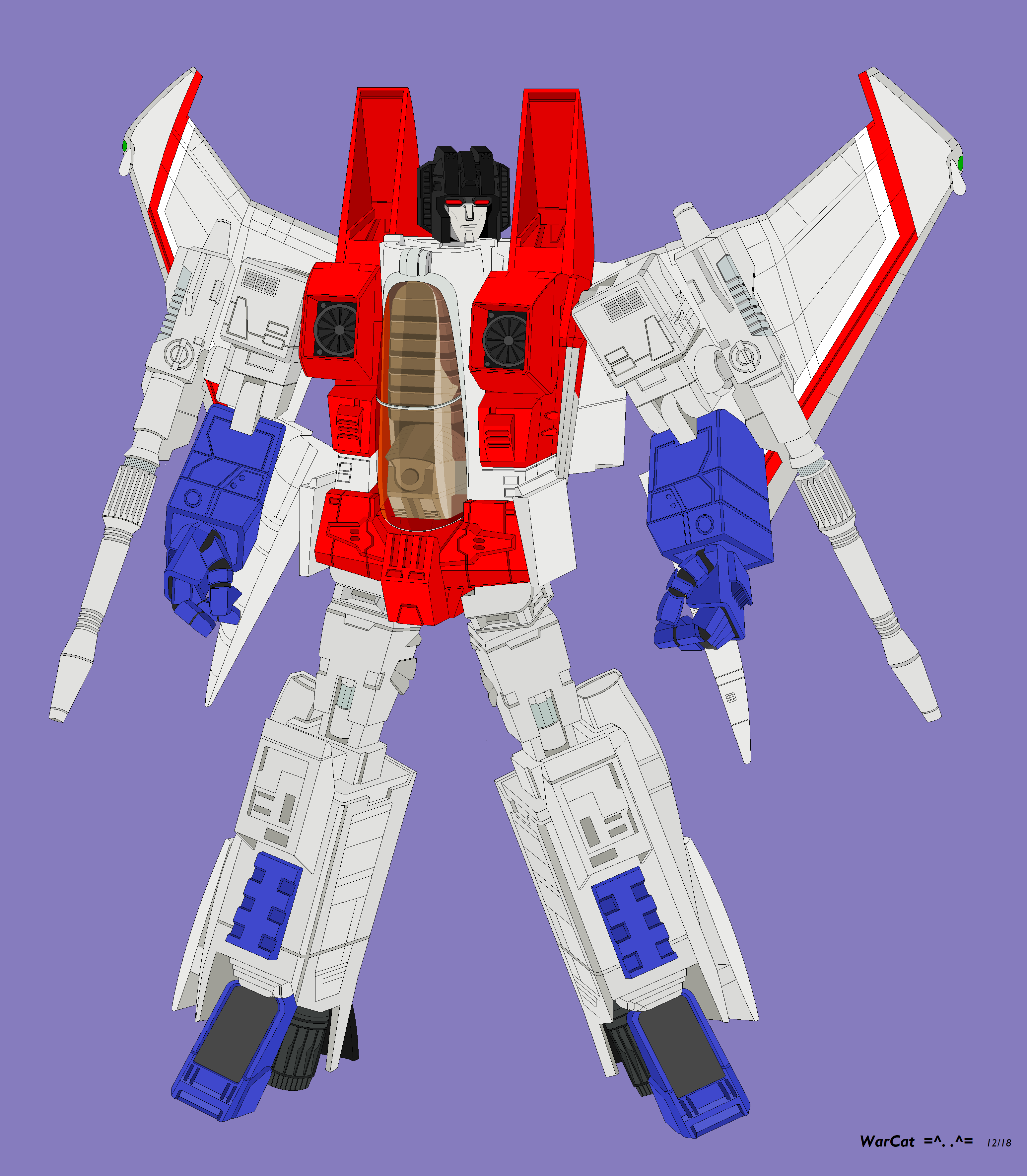 If I have a generic prototype... then I can make the other two main seekers... and I did. However, after this drawing I started on my next one. And that drawing had a cockpit canopy that was a very prominent part of the toy, and other parts that were under different colored tranparent parts. So, I did learn and Starscream was waiting for me to properly fix him. SO... I did. Even went so far to include reflections in the canopy, and gave them all different facial expressions.