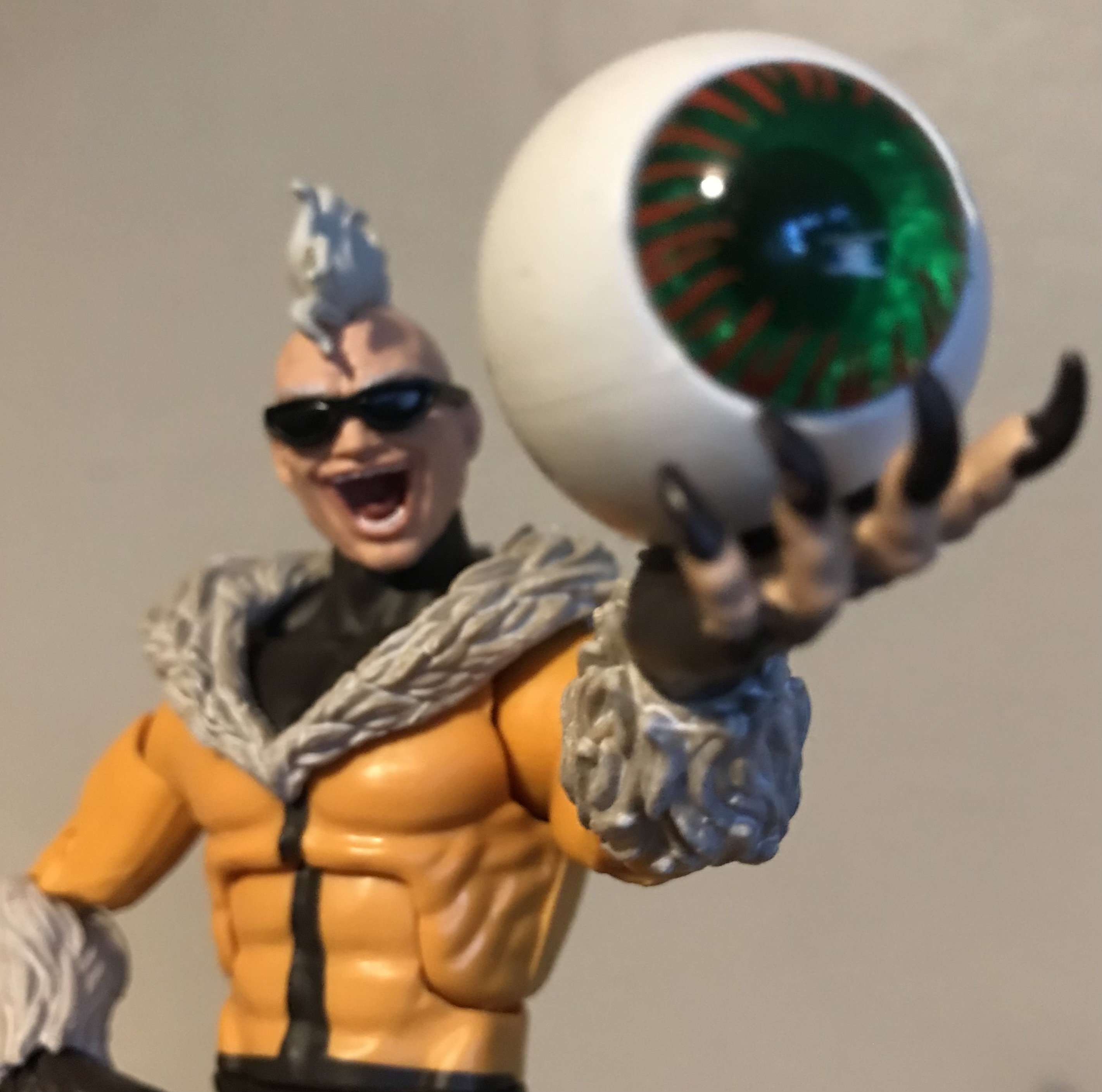 Alas, custom mistake number one: I thought ball joints were standardised. It would seem not. The socket for the MOTU Classics Optikk "head", is considerably smaller than the neck ball joint on Bad-Sabretooth. Luckily, in spite of my terrible memory. I had an alternate head all along. One that is actually more in scale with the body than it's actual head.