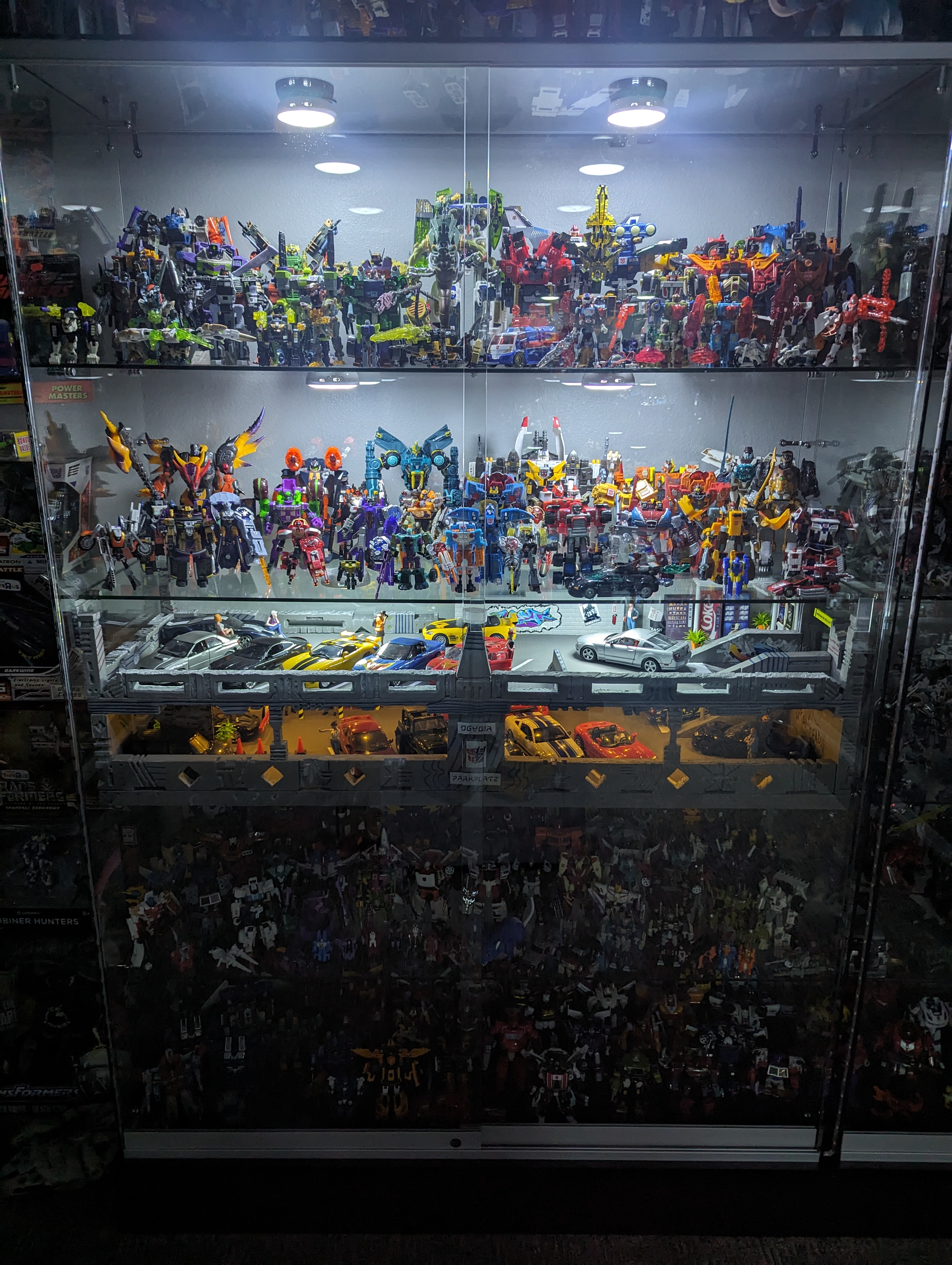 I have been lazy on buying more puck lights for my display cases. Recently, bought two packs, which enabled me to complete two more cases. A third display case (that has the parking garage), i was able to add lights to two shelves, leaving two more left. Then i still need lights for one more tall case and my shorter one. It’s finally getting there.