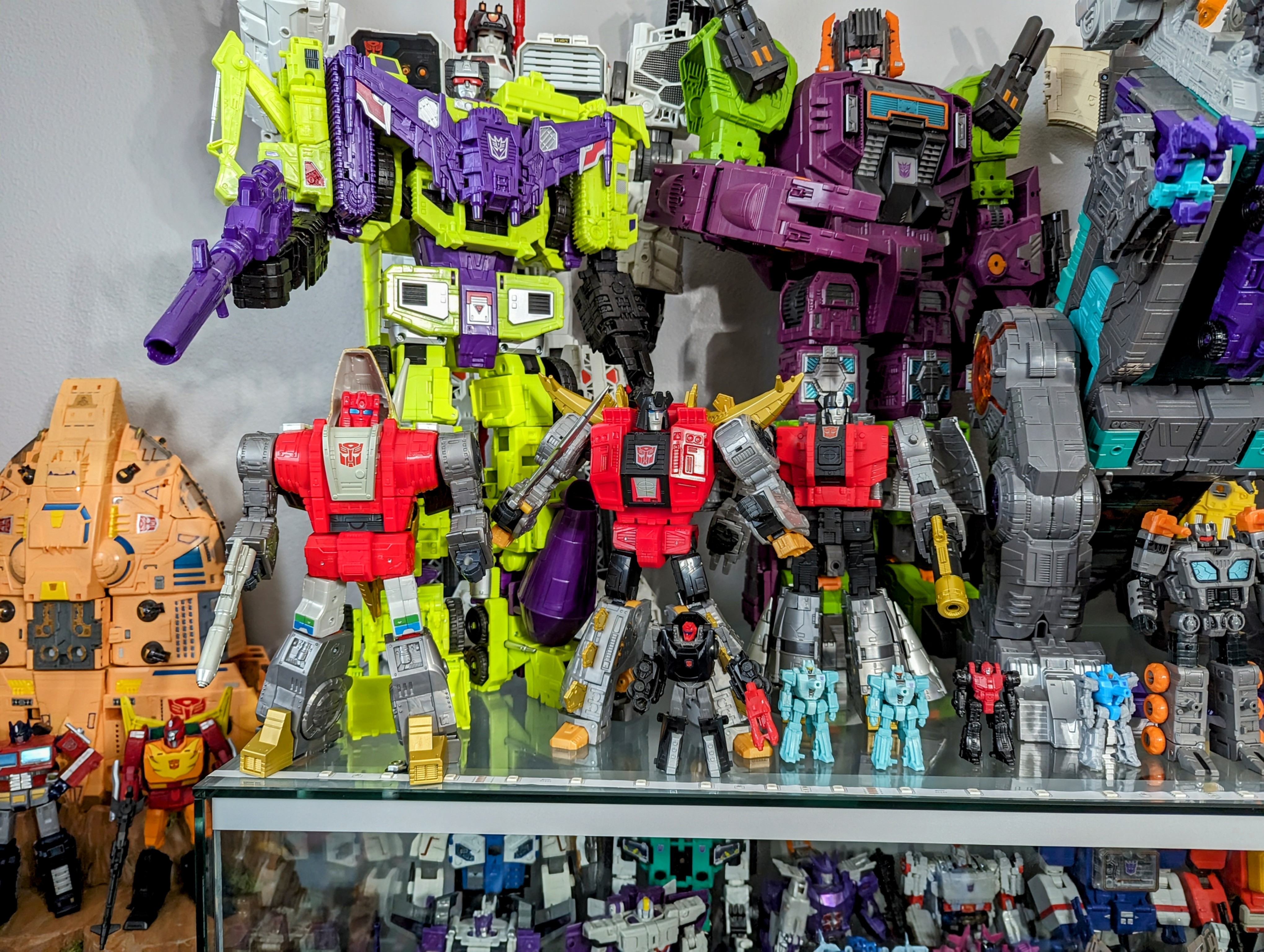 In the one case i moved up my BOTCON/TFCC, Classics/Universe/RTS, and on the bottom is WFC/FOC series. Then back to the move case, the fourth shelf now has my Titans return with my MP/3P/others on the bottom.