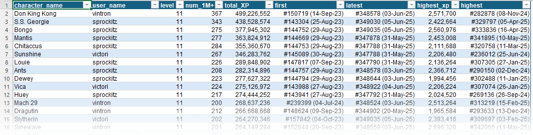 Interesting to see that the 'Cons have a slight edge in overall missions, but it's mostly concentrated on the sheer number of L11 fights happening at the top of the table.