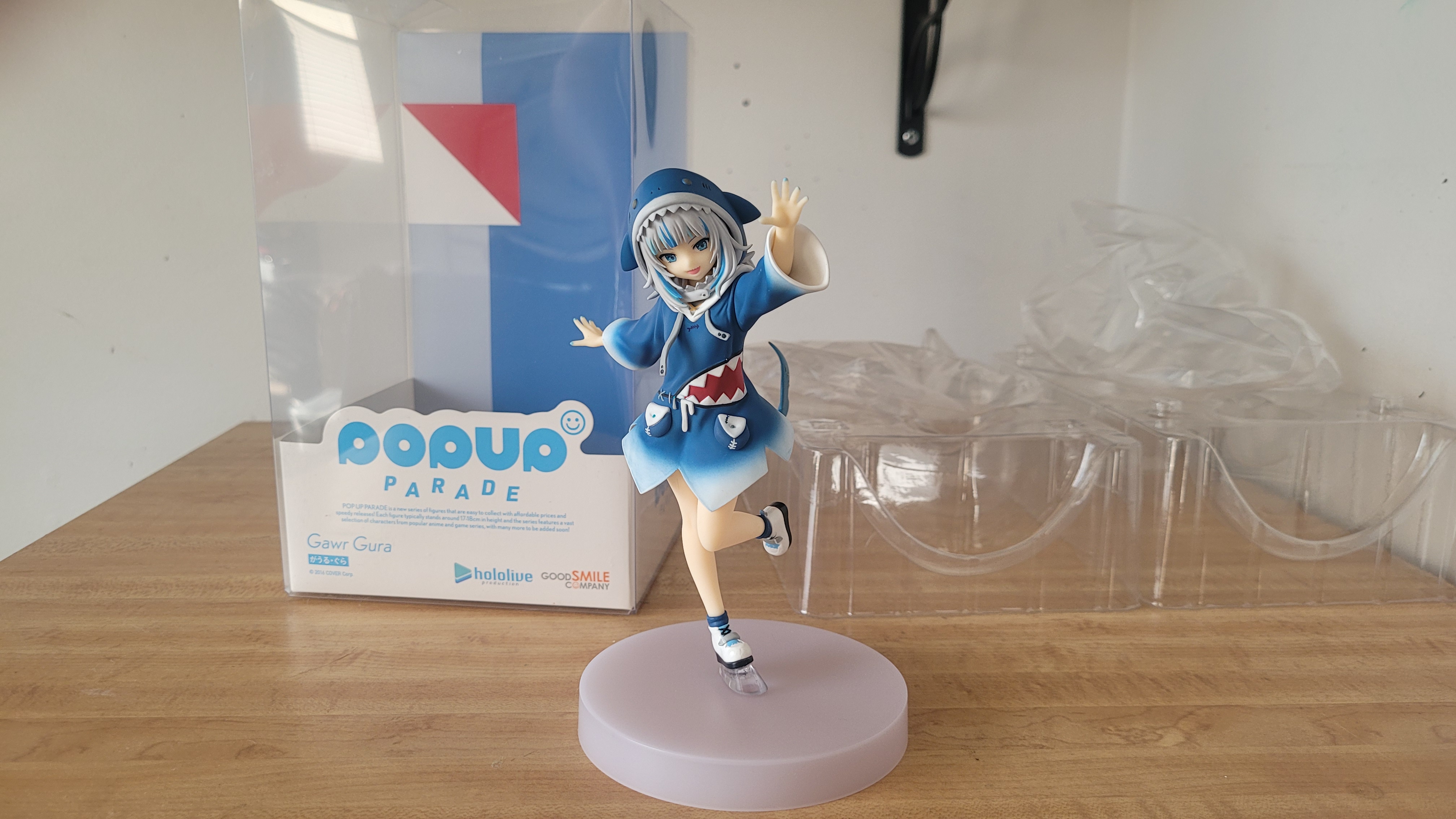 I finally got a Pop Up Parade Gawr Gura at normal price! That preorder was a long time coming. Too bad that she come with a huge-ass base rather than the newer smaller one.