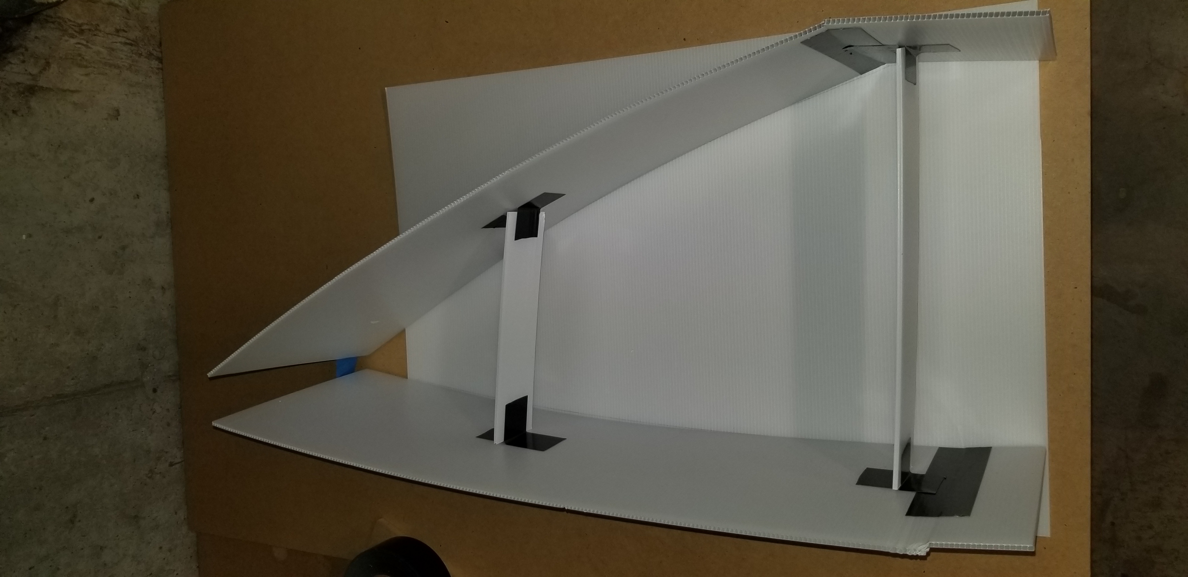 When I was at the hobby store the other day I picked up corrugated plastic board. Relatively cheap and lightweight, it's also paintable and more durable than cardboard. More importantly, it's bendable. This is what I will be using for the curved rear section of the exposed Ark.