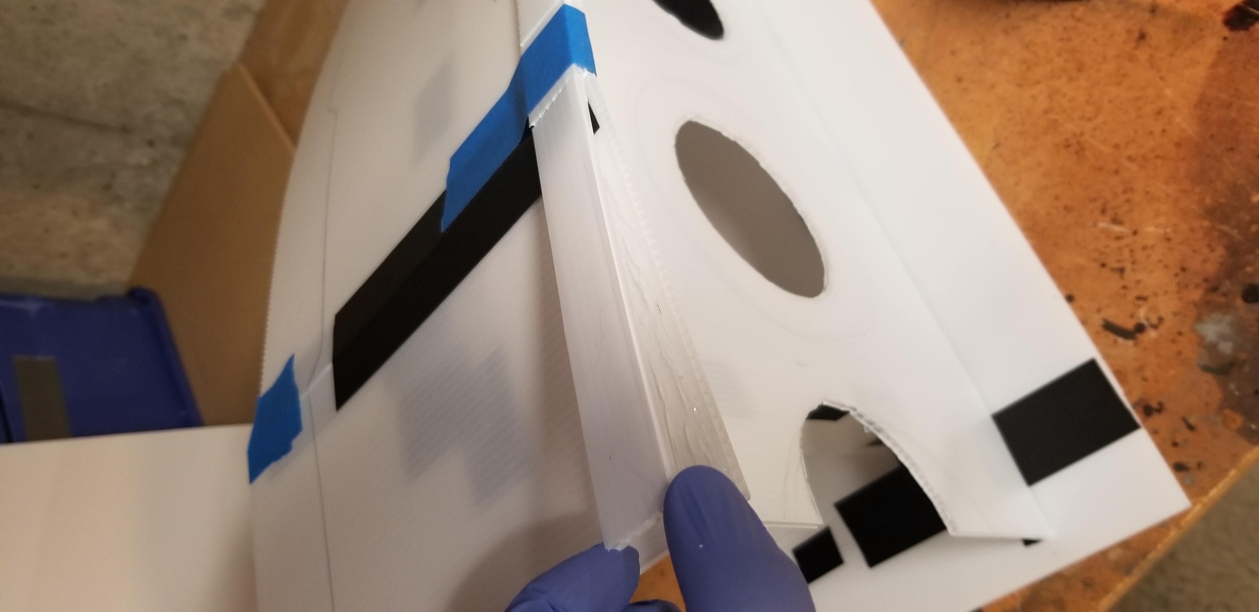 I used heavy-duty Gorilla Tape to build the tunnel itself and then put it in place along with a floor panel for position. (Gorilla Tape worked great, but be very careful, once it touched the foam board it was permanent. If you try to take it off to readjust, it will rip the foam board apart. Measuring is your friend.)
