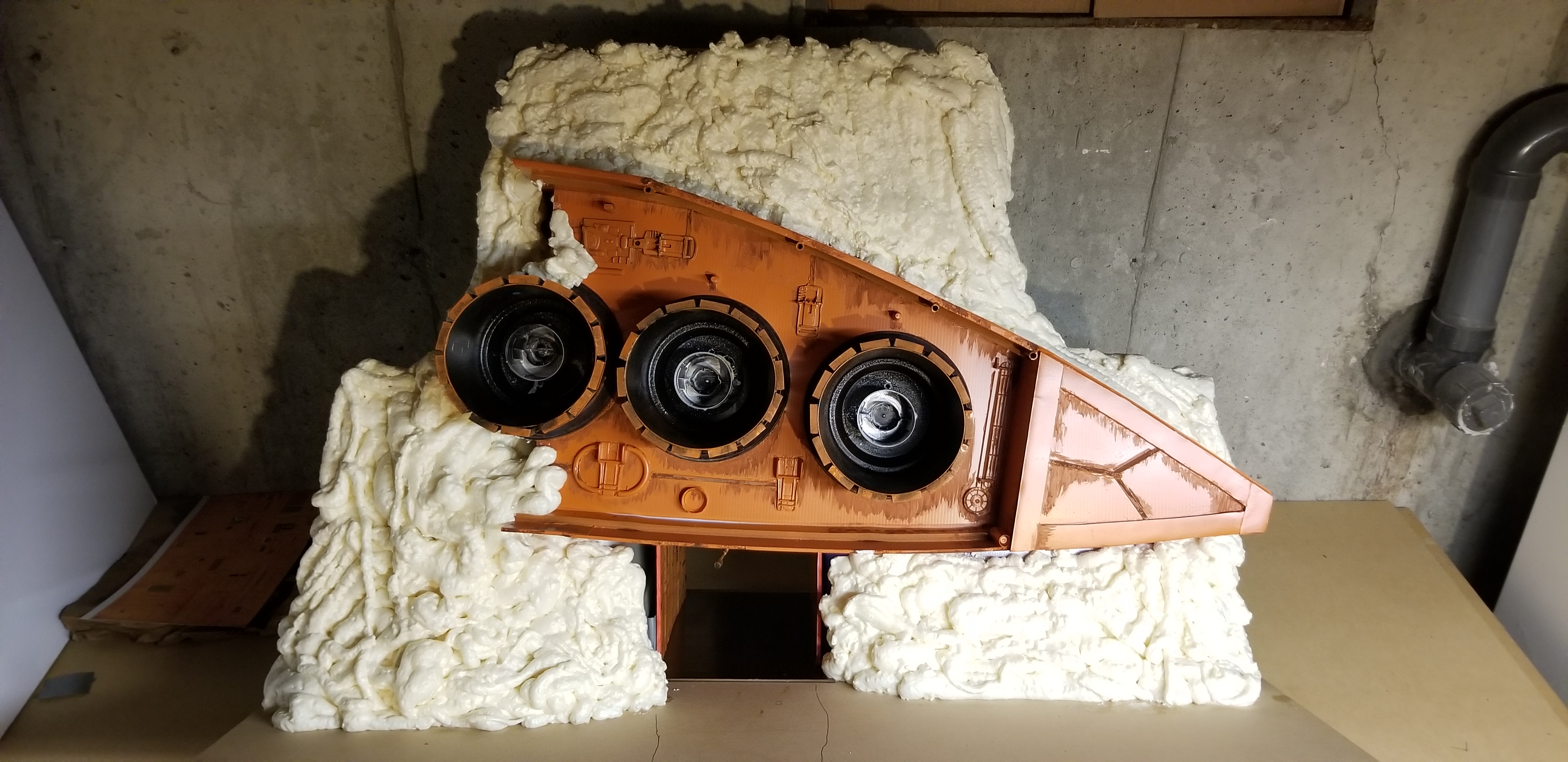 Building this thing was actually the easy part. I am now in the tedious part of applying foam in sections and having to wait 24-48 hours for it to dry each time. I did start applying some compound to some of the deeper crevices to even things out a little.