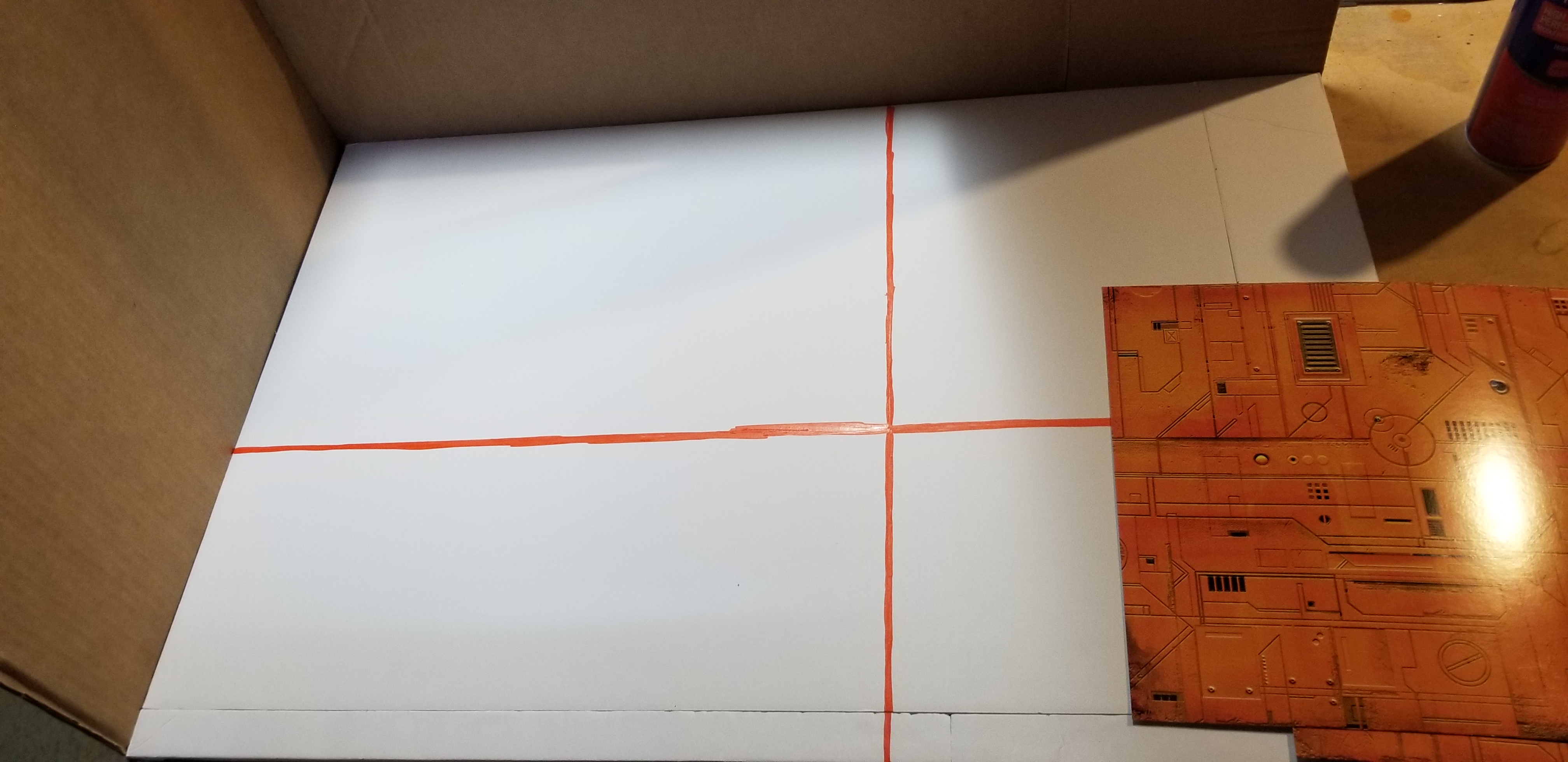 I measured the panels in such a way that the four corner seam will be behind the Teletraan-1. It should provide for a slightly more seamless look.