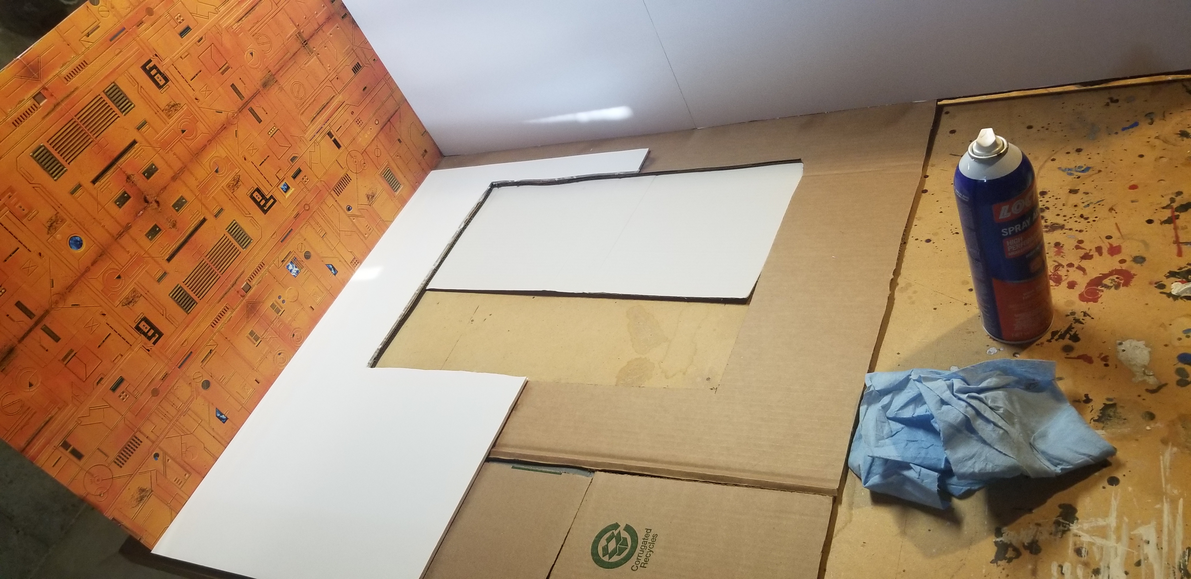 Made a little progress. I measured out the foam board for the ceiling around the light tray, and then it was the painstaking process of measuring every piece of Ark wall to fit seamlessly. I'm really glad I printed all these walls on 120# cardstock, they are flat as can be. Had I done these on paper, the spray glue would have warped and bubbled the surface horribly. The custom piece with the window was from a different file and as such, the color is slightly darker than the rest. I plan on running some small tubing as a pipe to somewhat disguise the difference between the panels. I couldn't really line up the graphics perfectly, but with the Ark walls being so detailed, from a distance it's hard to tell. Or I'm just a perfectionist and my own worst critic, lol