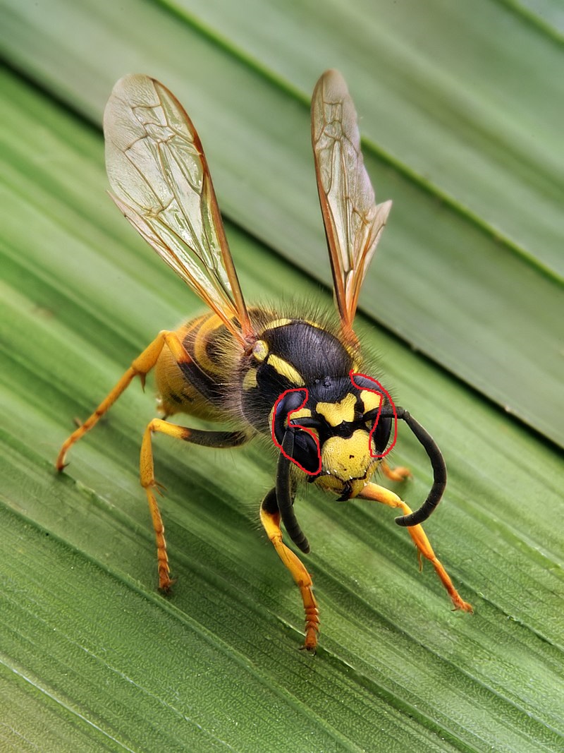 Now, actual wasps have almost cashew-shaped eyes that wrap around the sides of their heads rather than sit on the front of them. To illustrate this, the same Google image result as before, as well as the Wikipedia image for wasp: