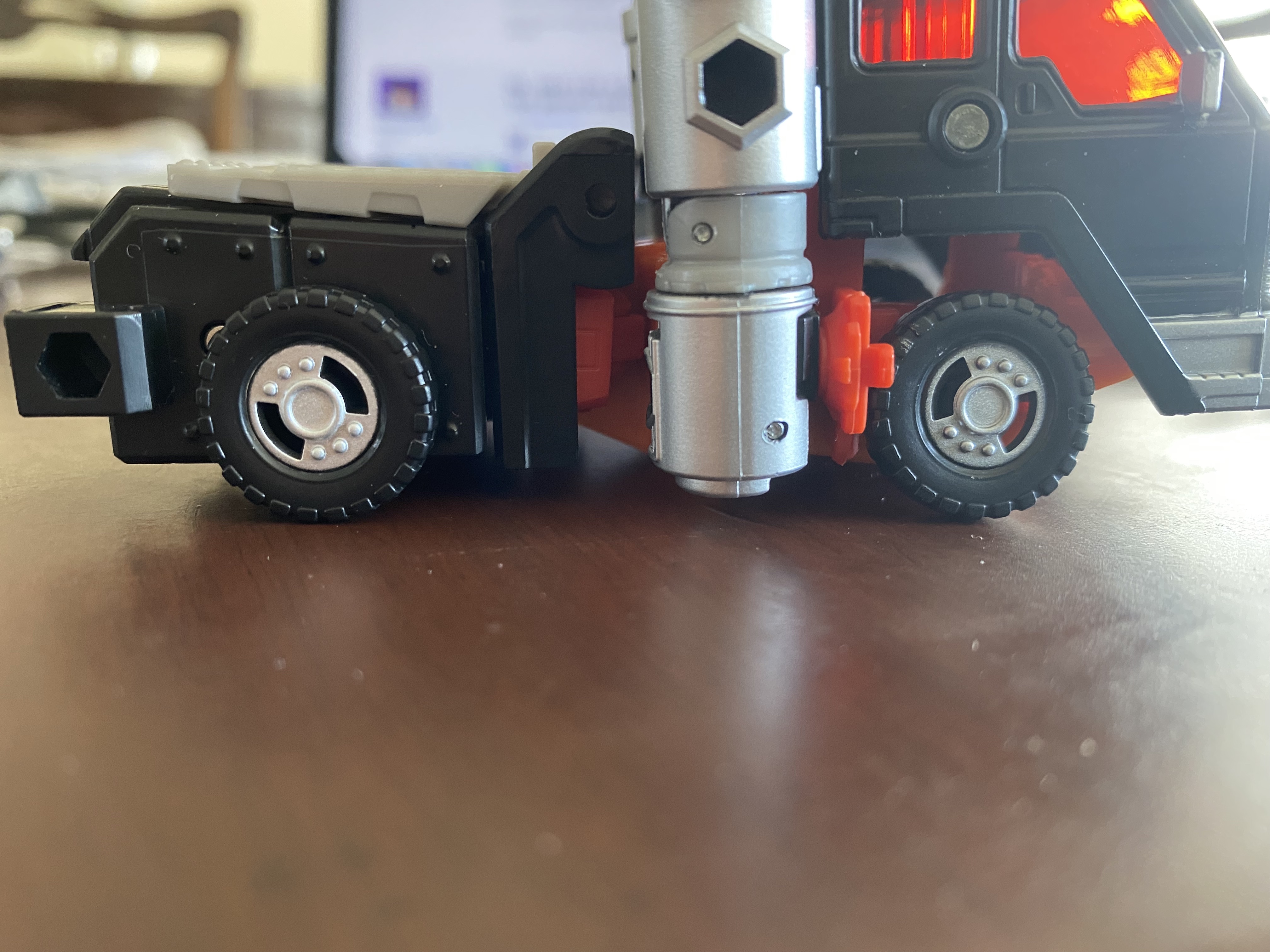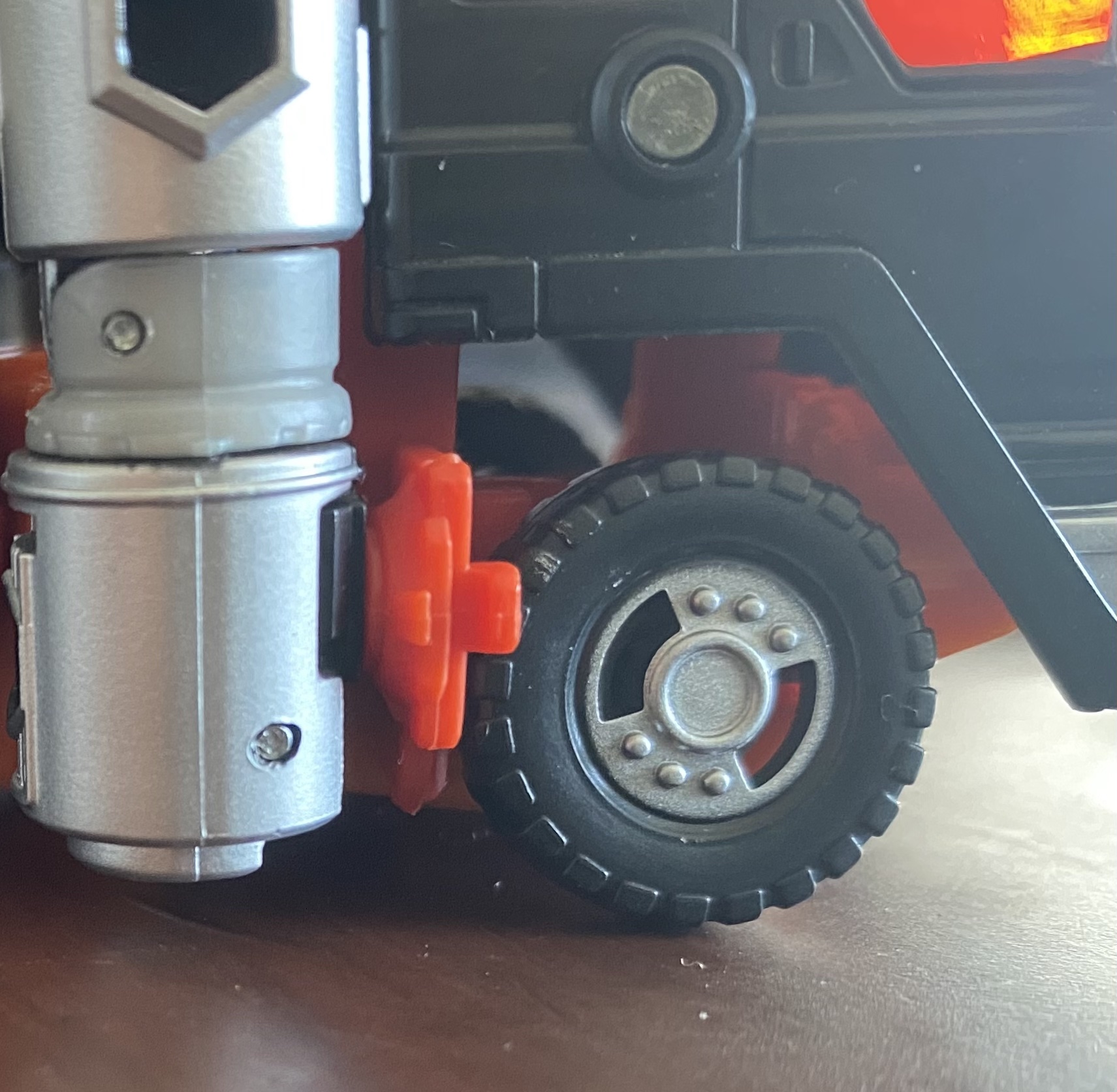And either I’m doing something wrong, or the clearance of the tires and the arm panels is nonexistent. The front tires scrape against the panels in truck mode, and Road Ranger’s chest seems to protrude a bit too low past the tires and hits the ground.