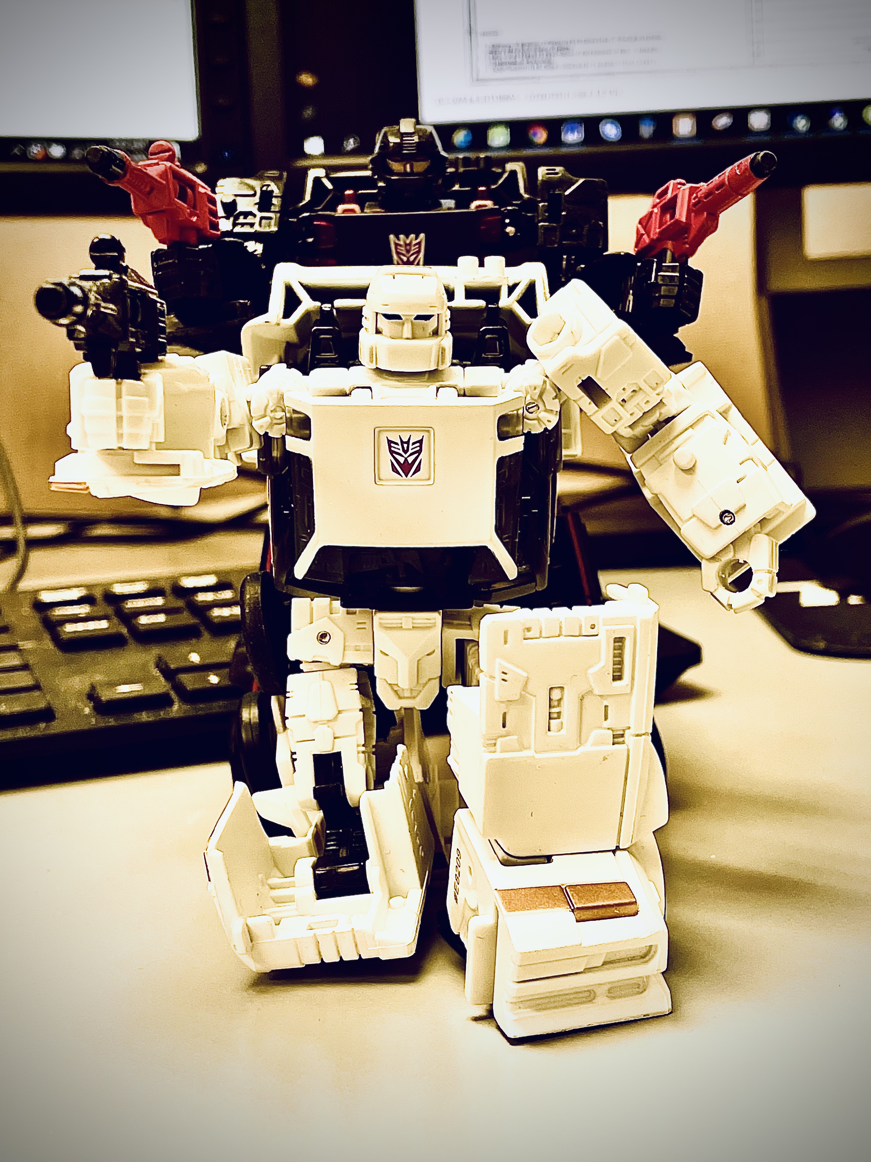 It might have taken me until the billionth release to actually get him (I've lost count of how many times he was actually released). I still really like the thrilling 30 version which joins the MPs shelves and this guy joins my headmasters shelve. Head on. Head on.