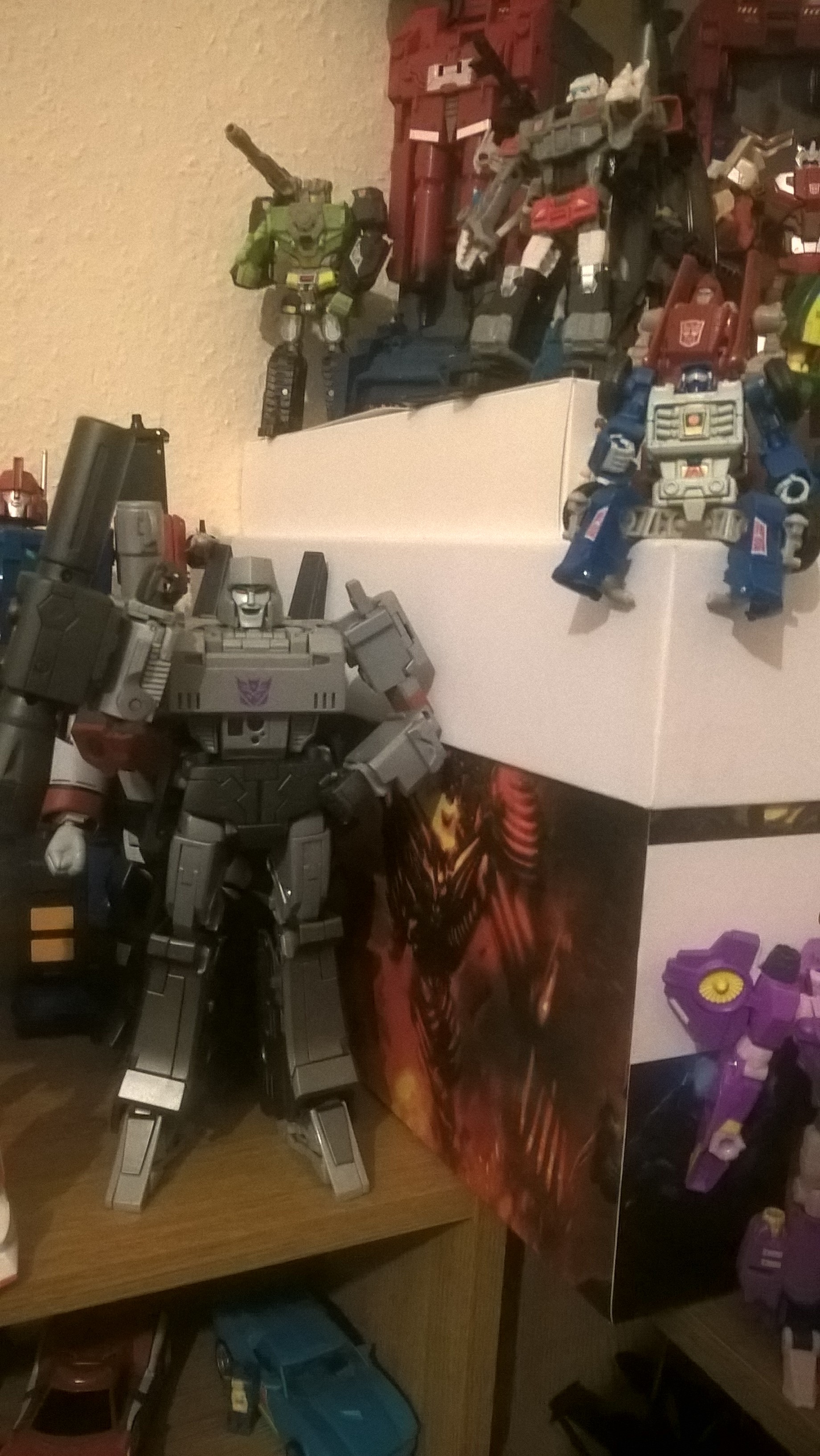 Autobots gathering for a bedtime story told by Megatron (didn't realise how tall the figure is unless the KO is a few cm bigger for some reason, if hasbro ever do it in lighter grey plastic then I will have to pick it up anyhoos. Got to find a third party galvatron that is at least the same size of him now)