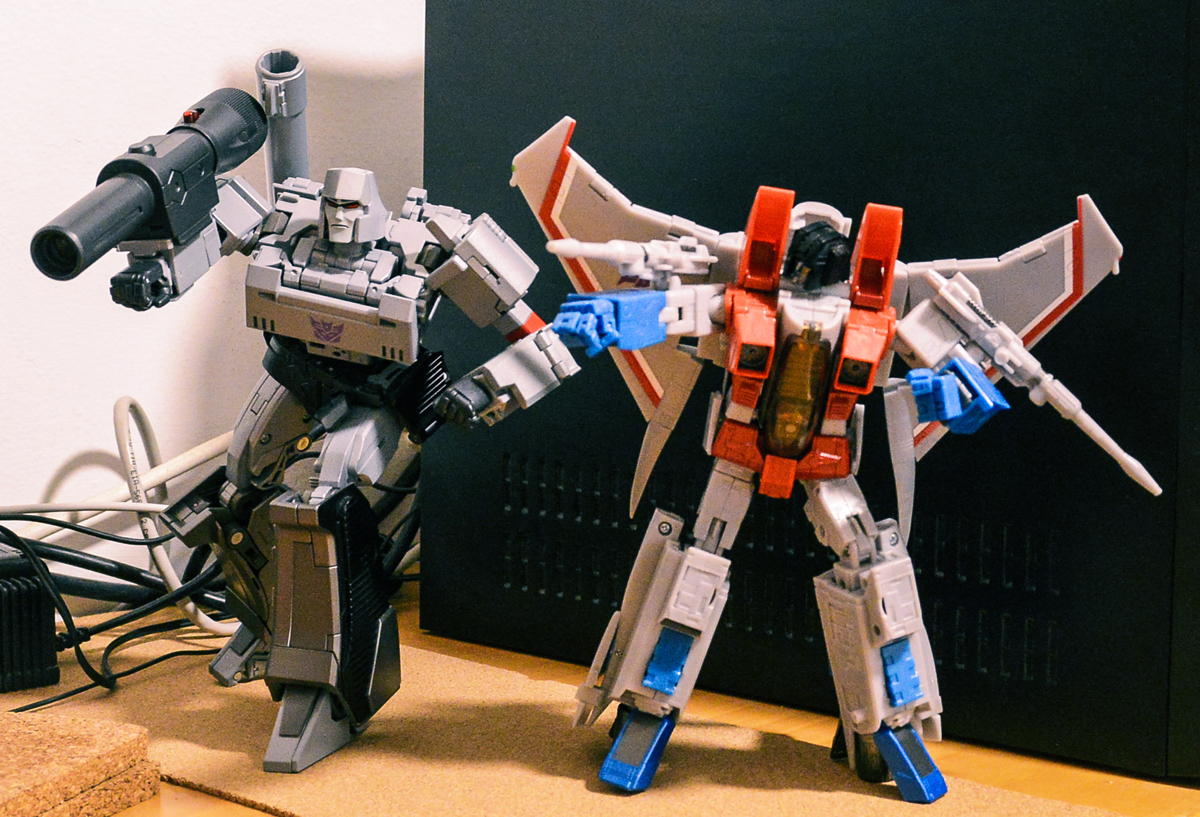 On my bedside desk I got POtP Starscream. On my computer desk I got Generations Kup, TR Hot Rod, and Generations Blurr.