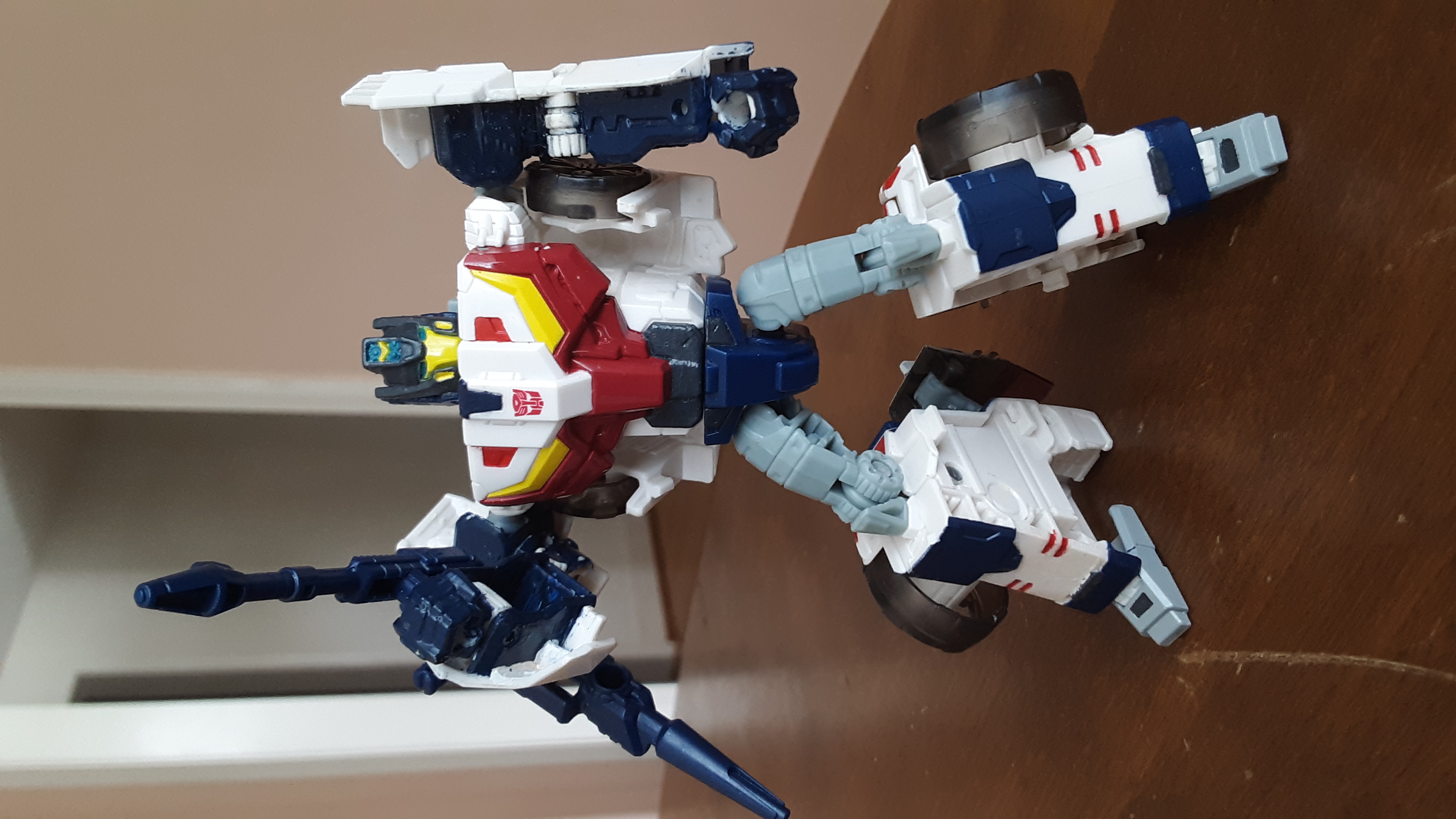 At first I thought I'd just darken his helmet. That led to me picking out his eyes, and adding some detail to the titan master as well. Then I decided to add some blue to the arms, like the IDW character model, and the next thing I knew I was overhauling the toy's deco.