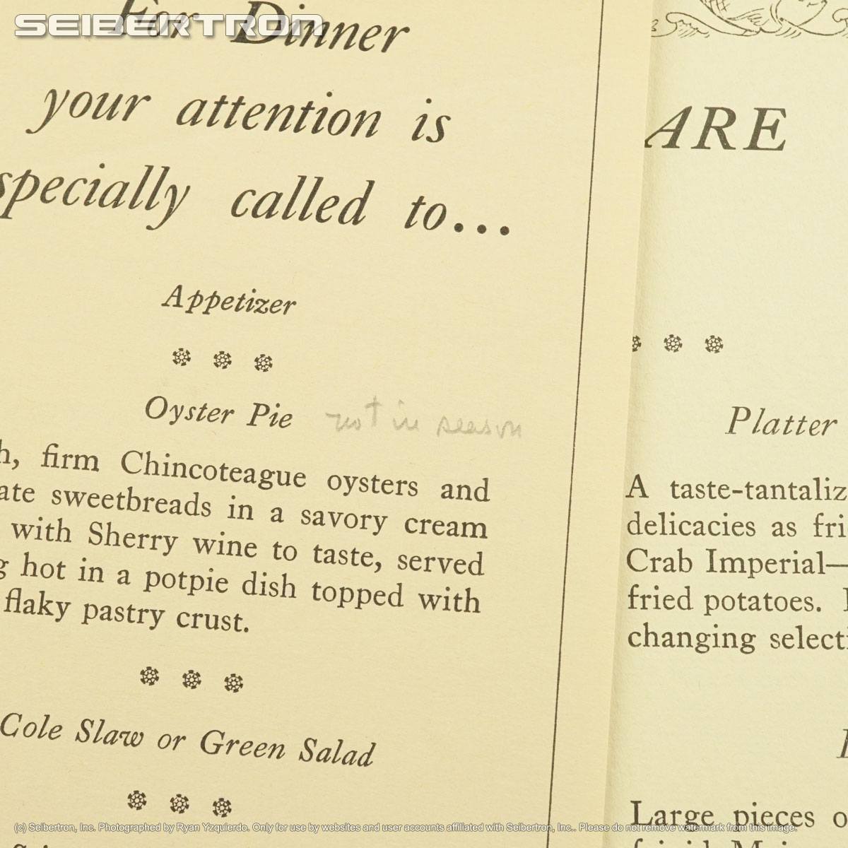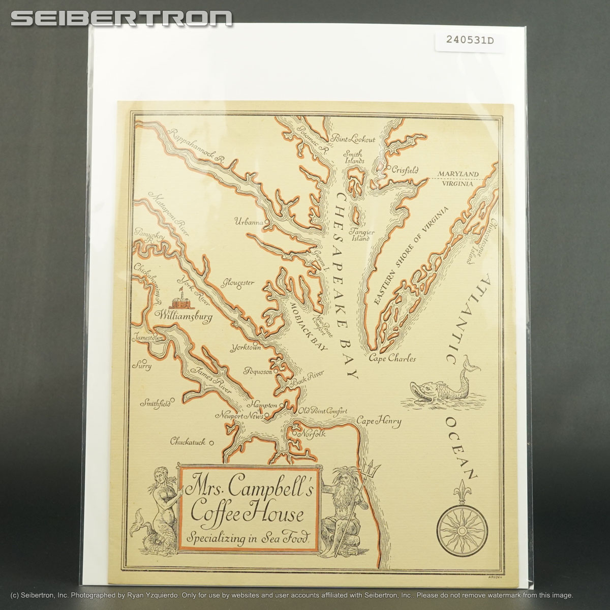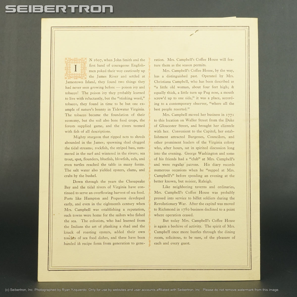 MRS CAMPBELLS COFFEE HOUSE SEAFOOD MENU + SPECIALS 1957 WILLIAMSBURG VA 240531D