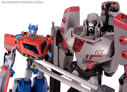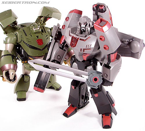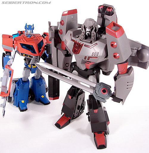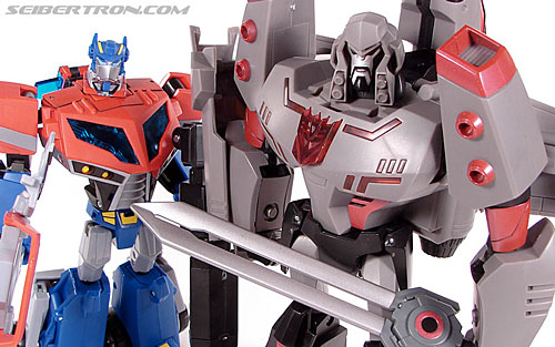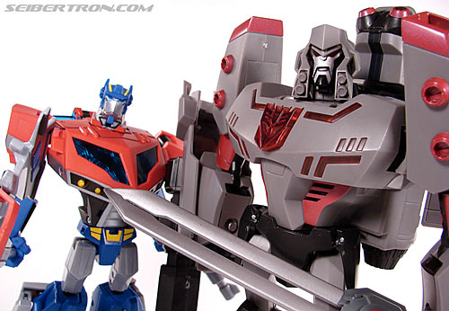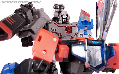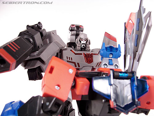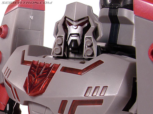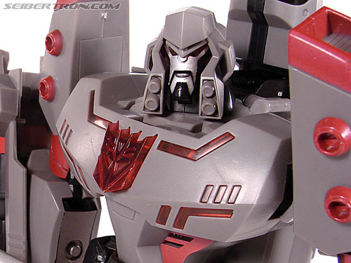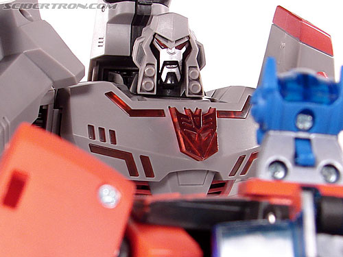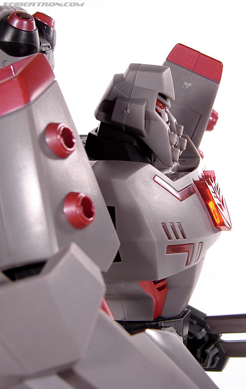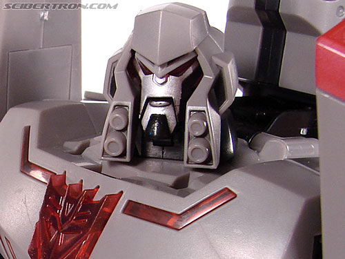 Megatron's head was positioned in some of the pictures by using one of the twisty ties from his packaging to force his head to stay in position like it is when you push the Decepticon symbol on his chest. The joy of photography!