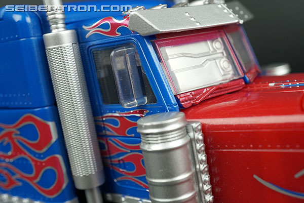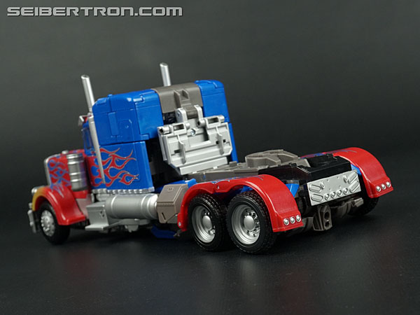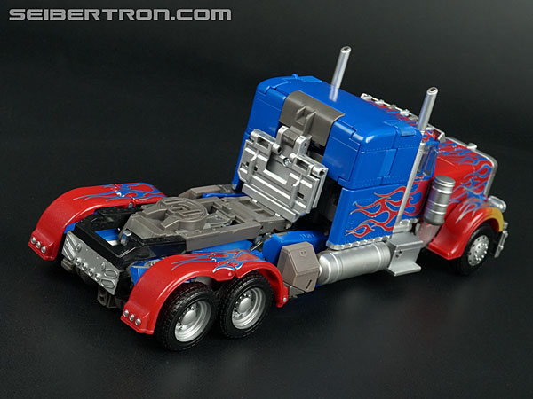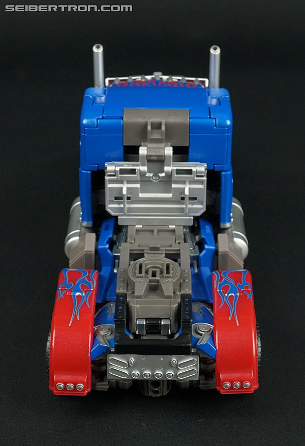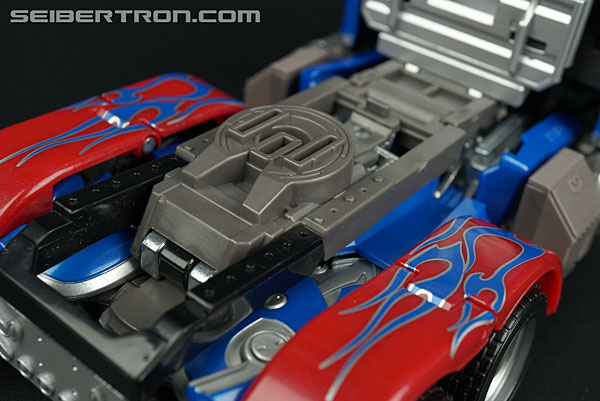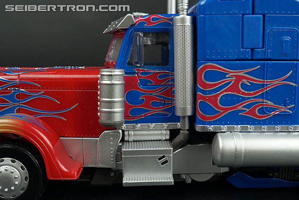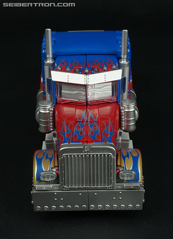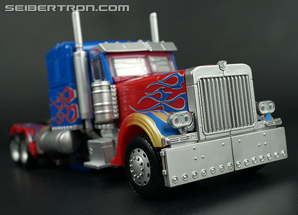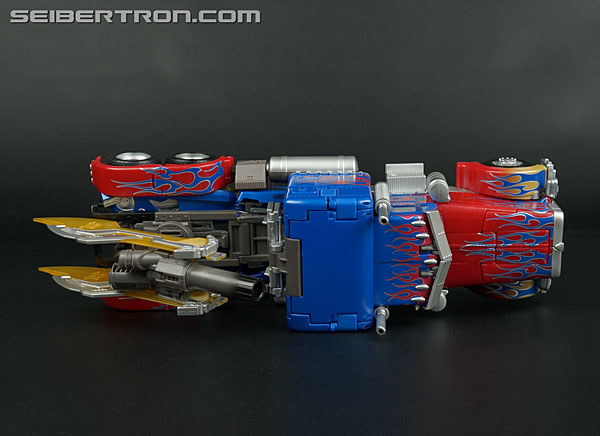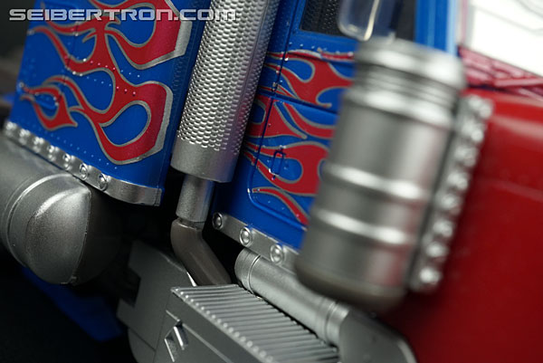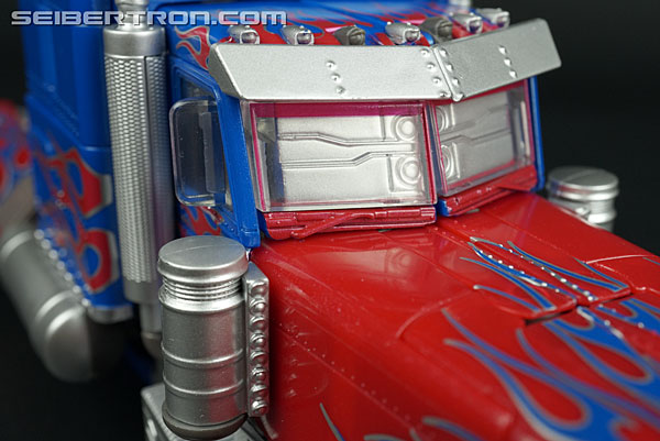 Thanks to YouTube reviewer emgo316 for showing how to get pretty close to transforming this figure properly. We figured out an easier method after watching his video by squeezing the front side barrels upward while pressing downward on the roof top and making sure other panels along the way pegged in and lined up properly so that the smokestacks also plugged in correctly. Overall, it took about 2 hours to get this figure properly transformed correctly in truck mode. I'm sure many of you can beat it once you figure out how to do it correctly. Here's a link to emgo316's excellent YouTube video to get you started in the proper direction.