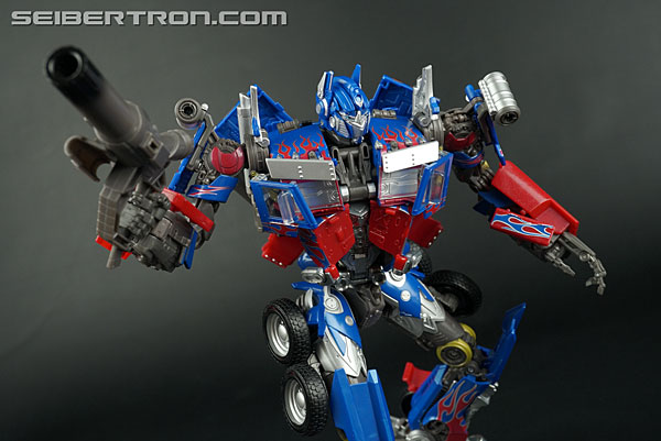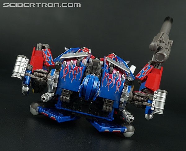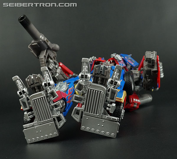 Thanks to YouTube reviewer emgo316 for showing how to get pretty close to transforming this figure properly. We figured out an easier method after watching his video by squeezing the front side barrels upward while pressing downward on the roof top and making sure other panels along the way pegged in and lined up properly so that the smokestacks also plugged in correctly. Overall, it took about 2 hours to get this figure properly transformed correctly in truck mode. I'm sure many of you can beat it once you figure out how to do it correctly. Here's a link to emgo316's excellent YouTube video to get you started in the proper direction.