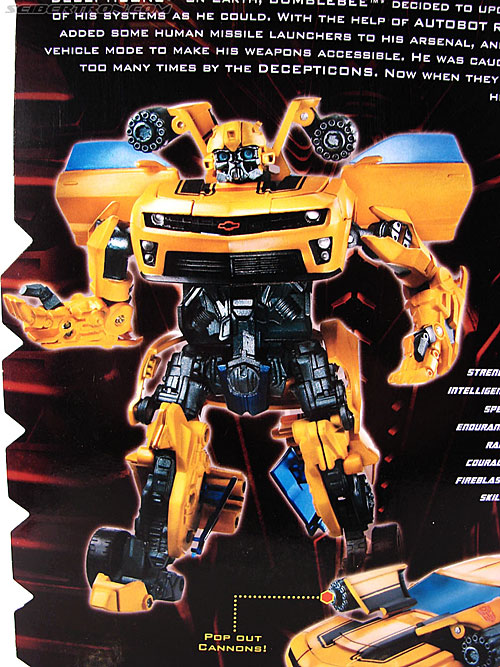 This is the first version of Cannon Bumblebee. It has blue painted plastic windows instead of clear plastic like the second version. It also appears that this head is slightly different than the second version and the "preview wave" Bumblebee, that or it's defective ... your call. You can view the second version here.