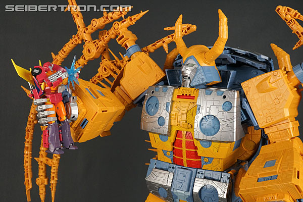 A ginormous weird lookin' planet just showed up in the galleries of Seibertron.com! Check out the first part of our MASSIVE gallery of the evil planet eating chaos bringer UNICRON from the Transformers War for Cybertron trilogy toy line. Devour our comprehensive photo shoot comparing Haslab Unicron to various Unicron incarnations along with other Transformers action figures. We even busted out the silver sharpie to fix his bottom teeth!