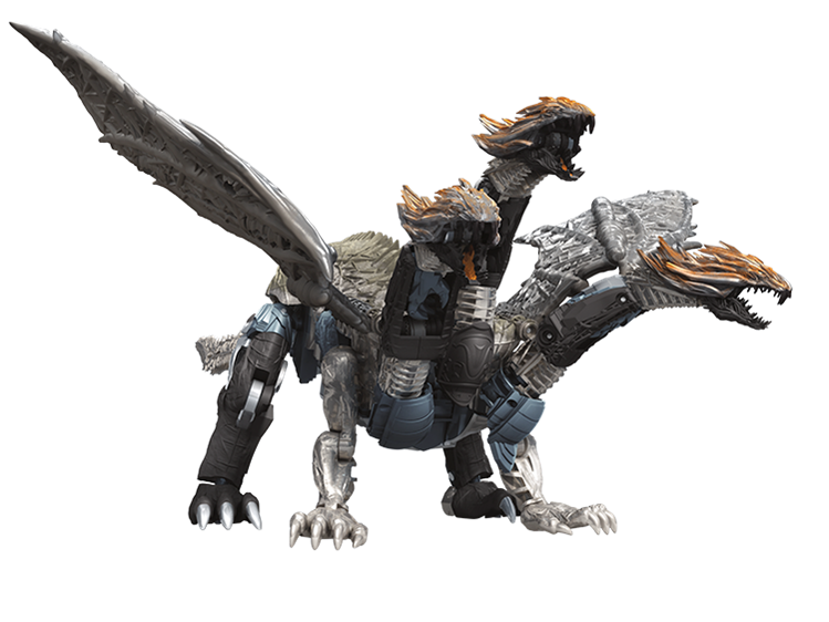 In the explosive TRANSFORMERS: THE LAST KNIGHT movie, new heroes must rise in an epic struggle to forge a future for all. As colossal forces threaten the universe, Knights of CYBERTRON, DRAGONICUS and STORMREIGN, merge to become an even greater one—the mighty, fire-breathing DRAGONSTORM! The action is now at a bigger scale for fans and collectors alike with the DRAGONSTORM figure, the latest figure from the PREMIER EDITION LEADER CLASS assortment, which stands at a 9-inch-scale with premium detail, intricate articulation and eye-catching packaging. Convert DRAGONICUS from knight to dragon mode in 26 steps. Convert STORMREIGN from knight to dragon mode in 27 steps. Combine DRAGONICUS and STORMREIGN to form the 3-headed DRAGONSTORM figure in five easy steps. Also comes with accessories. Available at most major retailers and on HasbroToyShop.com.