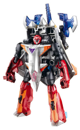 Even for most of the top DECEPTICON aces, low-altitude air combat is difficult and dangerous, but it's where DARKSCREAM excels. He prefers being close to the ground, where he can trick pursuing craft into a crash. His partner RAZORBEAM just make shim better at cutting dangerous maneuvers even closer.