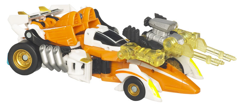 LEADFOOT gained fame among the AUTOBOTS as a first class infiltratior. Combined with PINPOINT, he becomes invisible to DECEPTICON sensors. His hypertuned engine gives him the speed he needs to be in and out of an enemy base before a single alarm can be tripped.